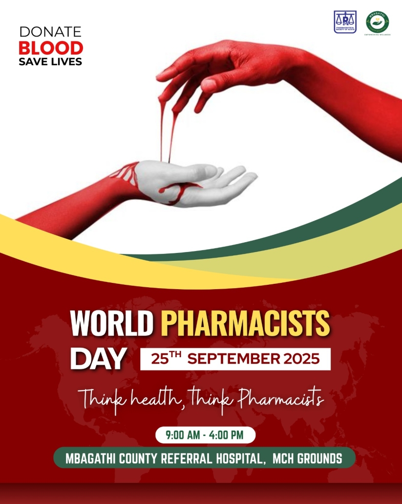 September 25th marks the world Pharmacists Day, In commemoration Mbagathi Hospital has set up a blood donation drive for all to participate in the noble course of saving lives. This event will be held on the 25th September 2025 at the facility MCH grounds starting from 8AM till 5PM.